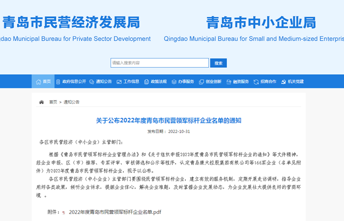 日前,青島市民營經濟(中小企業)發展工作領導小組辦公室公布了2022年度青島市民營領軍標桿企業名單,這是青島首次評選民營領軍標桿企業。青島明月海藻集團光榮上榜,成為“2022年度青島市民營領軍標桿企業”。