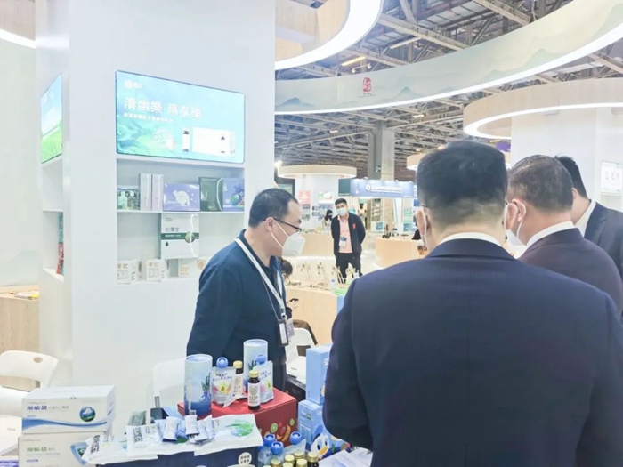 展示期間,明月海藻集團的產品吸引了不少觀眾駐足交流、洽談。