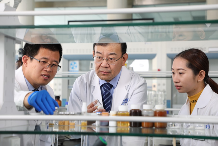 2021年3月,中國科學院大連化物研究所研究員馬小軍博士(中)在明月海藻集團國重實驗室