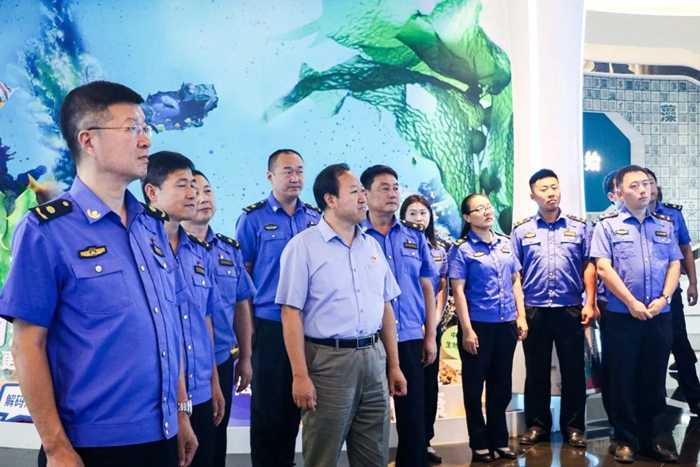 為積極探索新時期黨建發(fā)展新路徑,加強(qiáng)黨組織之間資源共享,優(yōu)勢互補(bǔ),9月25日,明月海藻集團(tuán)與青島西海岸新區(qū)綜合行政執(zhí)法局直屬四中隊在明月海藻世界景區(qū)開展“黨建聯(lián)建聚合力 共研共建促發(fā)展 ”活動,集團(tuán)黨工群團(tuán)中心主任封安波、健康科技黨支部書記劉振峰參加接待。