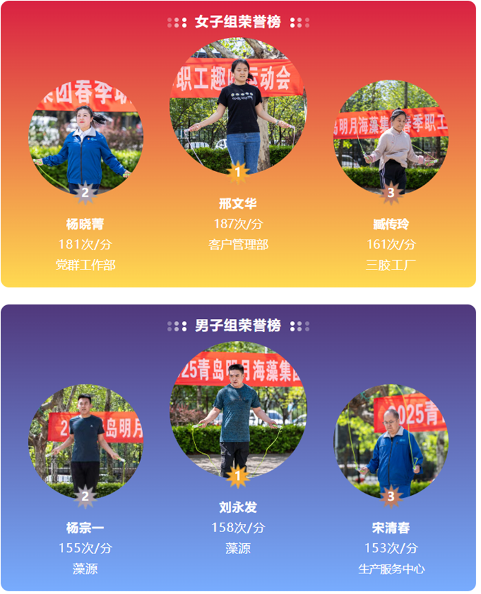 緊隨拔河比賽之后的是跳繩速度賽,男子組、女子組選手在1分鐘內(nèi)展開(kāi)激烈角逐。賽場(chǎng)上,選手們身姿矯健,跳繩翻飛如蝶,現(xiàn)場(chǎng)歡呼不斷。最終,男子組以158次/分鐘的成績(jī)問(wèn)鼎冠軍,女子組則以187次/分鐘的優(yōu)異成績(jī)拔得頭籌。