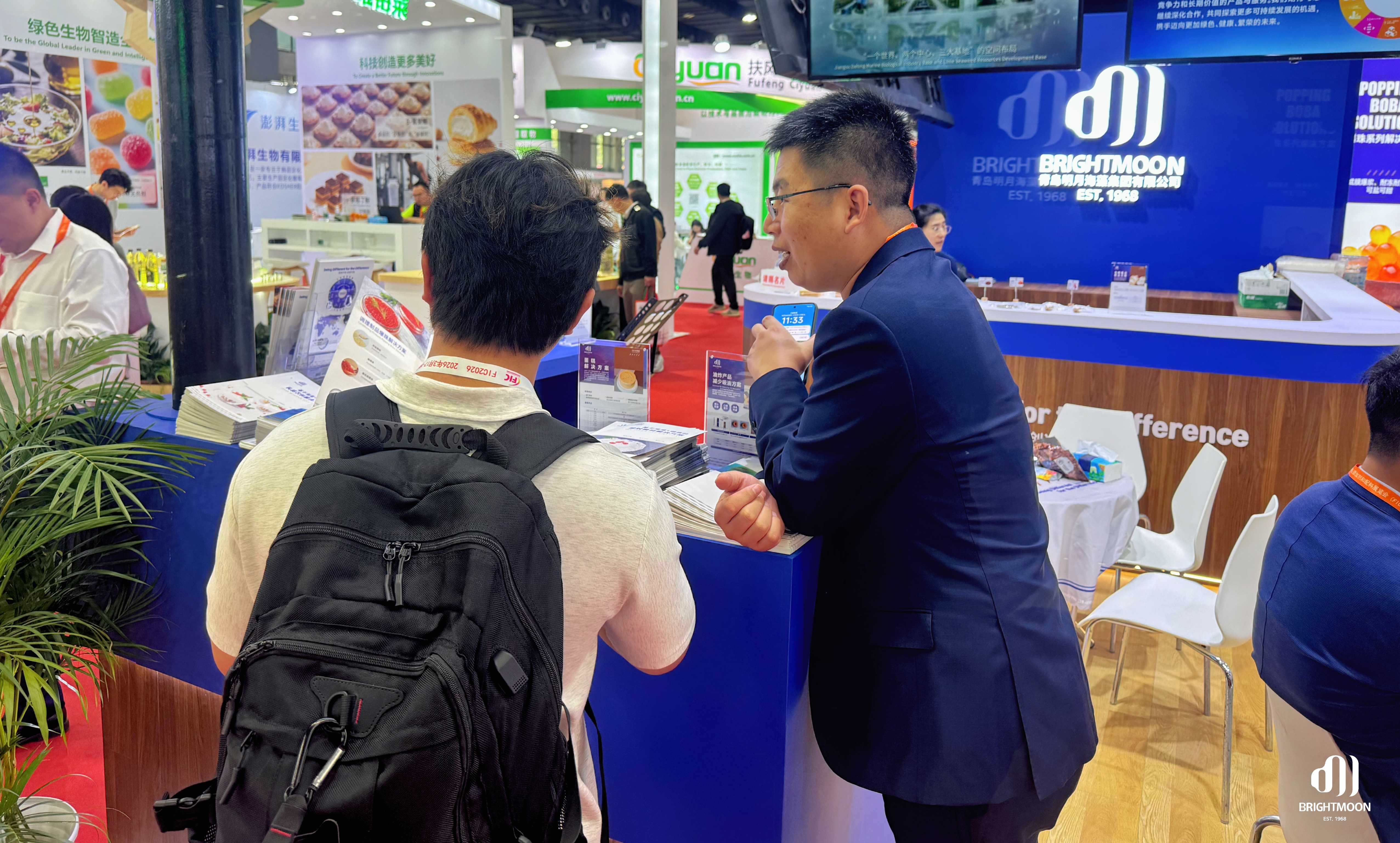 展會期間,明月展位始終熱度不減。專業團隊以產品展示、技術交流和場景化示范,向現場觀眾集中呈現“海藻功能原料×食品創新”的前沿趨勢,吸引了大量行業伙伴駐足探討,共同尋找下一代食品創新方向。