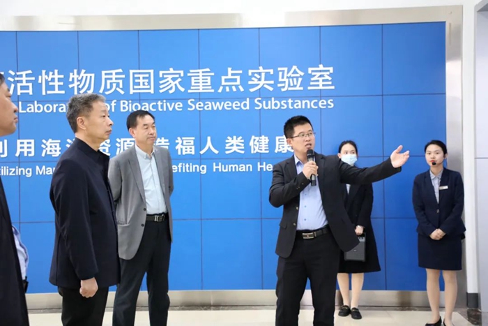 在海藻活性物質(zhì)國家重點實驗室,集團總裁助理、國重實驗室副主任張德蒙向調(diào)研組介紹了近年來集團大力實施借智引智工程,以產(chǎn)業(yè)優(yōu)勢和發(fā)展?jié)摿ξ齼?yōu)秀人才共同創(chuàng)新創(chuàng)業(yè),深入開展“產(chǎn)學(xué)研”合作,集聚產(chǎn)業(yè)領(lǐng)軍人才團隊,多項科研成果成功打破國外技術(shù)壟斷并實現(xiàn)產(chǎn)業(yè)化。